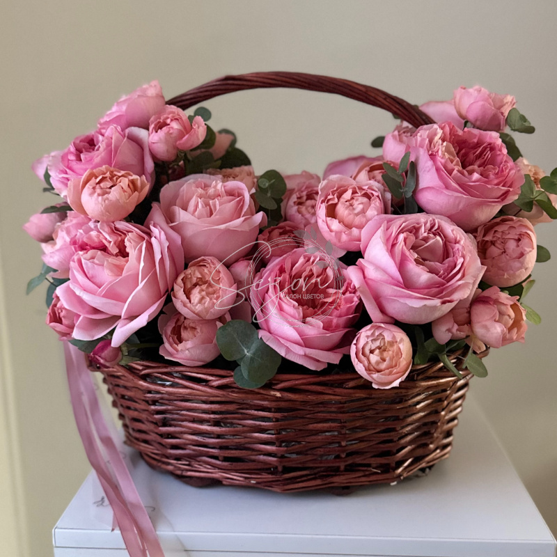 Композиция с розами— лаконичная элегантность, где пышные соцветия и сдержанное оформление подчеркивают гармонию простоты и изысканности.