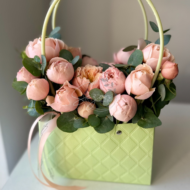 Монокомпозиция с пионовидными кустовыми розами— лаконичная элегантность, где пышные соцветия и сдержанное оформление подчеркивают гармонию простоты и изысканности.