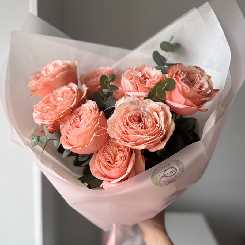 Монобукет с пионовидной розой «Робкий поцелуй»