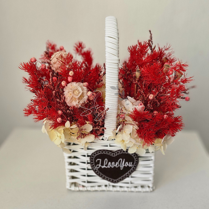 Композиция из стабилизированных цветов «Сказочное лукошко» (по предварительному заказу)